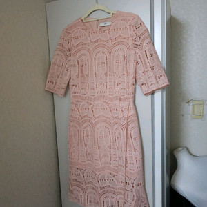 듀엘 시스루 셔링장식 레이스 원피스 55사이즈 새제품민