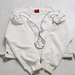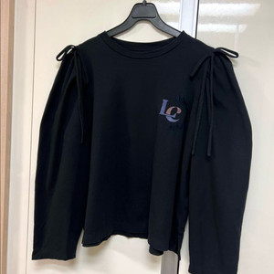 21 럭키슈에뜨 리본 셔링퍼프소매 긴팔티셔츠 블랙 자수