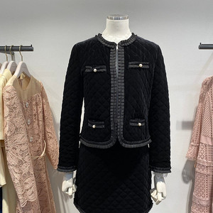 레니본 진주 벨벳 샤넬 투피스 자켓 스커트 세트