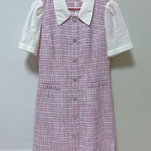 로엠 핑크 트위드 반팔 블라우스 원피스 S