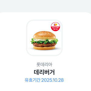 [판매완료]롯데리아 데리버거 (2200원)