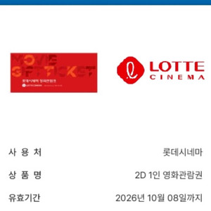 롯데시네마 1인 2D 영화관람권(주중/주말가능)팝니다!