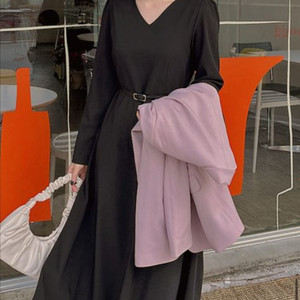 리리앤코 코트닝 밴딩 스퀘어넥 롱 원피스