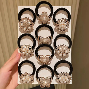 (새상품)진주 큐빅 장식 헤어끈/머리끈 10종 세트