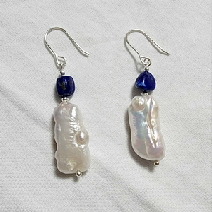 핸드메이드 바로크진주 청금석 은귀걸이 (925은)