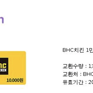 BHC치킨 1만원권 1매에 7900원(2매보유)