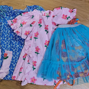 여아옷5-6세)베베드피노 블라우스120+ 모이몰른 치마멜빵120 +토들앤키들 원피스120 일괄
