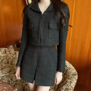 (다현)마쥬 울 트위드 리본 자켓 스커트 치마 셋업세트