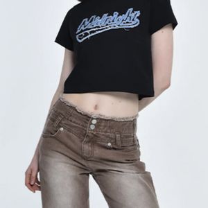 미드나잇무브 데님로고 블랙 크롭티셔츠