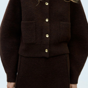 [S]자라 카멜 브라운 아웃포켓 라운드 니트 가디건