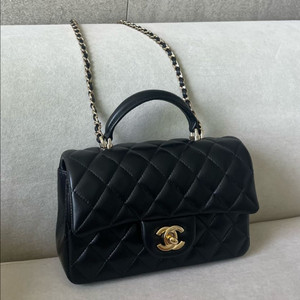 가격내림) 샤넬 뉴미니 탑핸들 샴골 블랙 램스킨