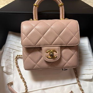 샤넬 뉴미니 탑핸들 플랩백 핑크(현재900