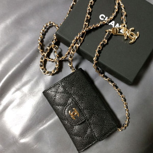 샤넬 체인스트랩 카드지갑 블랙 금장