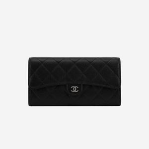 샤넬 클래식 롱 플랩 장지갑 캐비어 은장 블랙
