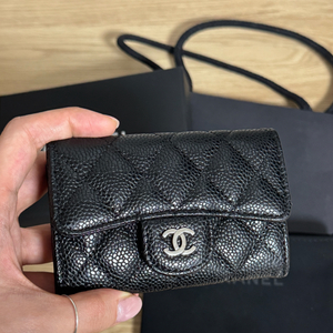 샤넬 클래식 캐비어 플랩 3단 반지갑 블랙 은장
