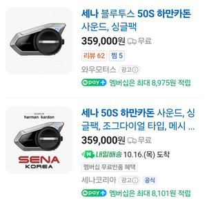 세나(헬맷 인터콤) 50S 하만카돈 싱글