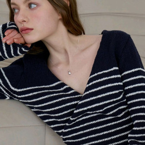 에잇데이즈어위크 랩 단가라 니트 네이비