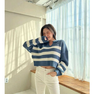 쉐얼유 단가라 오픈 카라 크롭 니트-소라