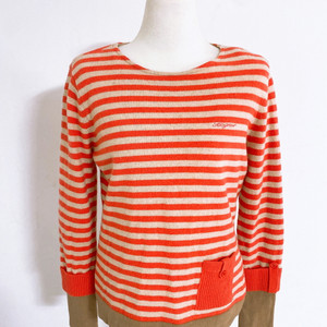 (105)빈폴/오렌지아이보리 단가라브이넥니트