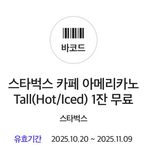 스타벅스 아이스아메리카노 톨사이즈 교환권