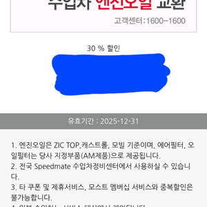 스피드메이트(국산차) 엔진오일 30,000원 할인권