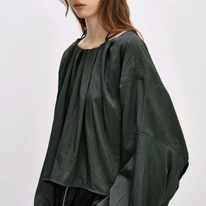 시스템 크링클 스트랩 돌먼 슬리브 셔츠 블라우스
