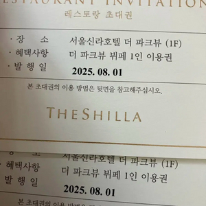 서울 신라호텔 더파크뷰 뷔페 식사권 2매