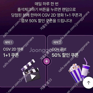 신세계 cgv 1+1 콤보50%쿠폰 오늘받음