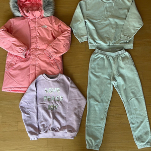 여아 겨울옷 노스페이스 패딩 150사이즈+ 탑텐 셋업 160사이즈 + 탑텐 맨투맨 160사이즈
