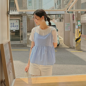 비닐포장새상품)여름 여자 블루 체크무늬 민소매나시티셔츠