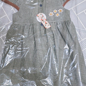 인스타그램 #빈후맘 옐로우빅데이지 꽃무늬 체크 앞치마