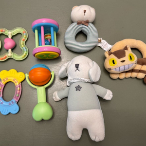 블루독 및 오가닉맘 아기딸랑이 및 인형 일괄(상태좋음)
