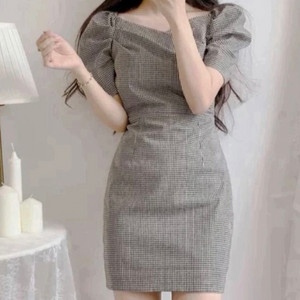 프리사이즈 여성 체크무늬 반팔 원피스 입니다.