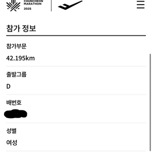 2025 춘천마라톤 풀코스 D그룹 남여 각각 양도