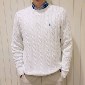 폴로 맨즈 케이블 니트 스웨터 XXL 화이트,크림