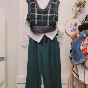 리본 체크니트베스트.SJSJ프릴블라우스. 니코앤드