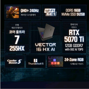 msi 백터 16hx 5070ti모델 판매. 새상품