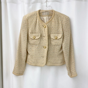 (착샷O) 버터옐로우 진주버튼 트위드자켓