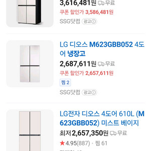LG 디오스 오브제컬렉션 4도어 냉장고 610L