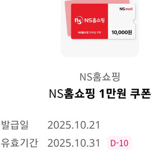 NS홈쇼핑 1만원 쿠폰 -> 1000원