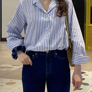 택포 한섬 타임 긴팔 셔츠 블라우스 스트라이프 여성 F 봄 가을 훌륭 사랑봉봉