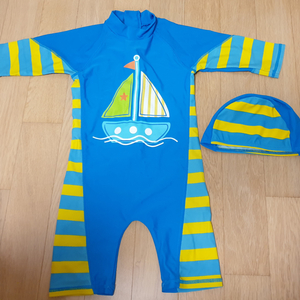 데님인더박스 100 남아 수영복+모자 세트 래쉬가드 올인원