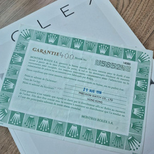 로렉스 데이져스트 16233보증서