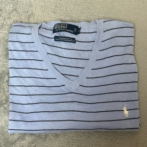 폴로 릴프로렌 스트라이프 브이넥 피마코튼 니트