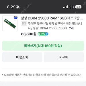 55,000원찜 1 ∙ 채팅 4![[팝니다] 삼성 DDR4 2666Mhz 8GB 2개 (총16GB)](https://img2.joongna.com/cafe-article-data/live/2024/11/29/1087411608/1732858713852_000_7qVE5_main.jpeg?impolicy=thumb&size=150)