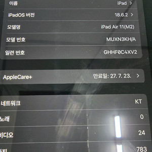 아이패드에어6 m2 13풀박128wifi +애플케어보증