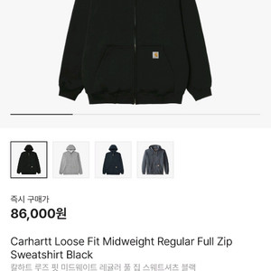 칼하트후드집업 루즈핏 미드웨이트 풀집업 L사이즈 새상품