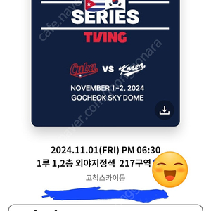 11.01(금) 2024 프리미어12 야구 1차전 한국 vs 쿠바 고척스카이돔 1루 3층 4연석 양도