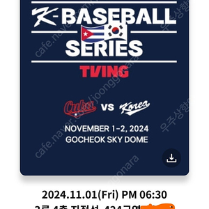 11/1 11/2 대한민국 VS 쿠바 1,2차전티켓