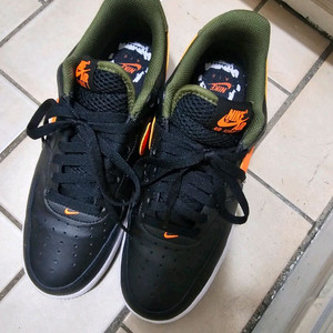 나이키 에어포스1 로우 블랙 오렌지 265 팝니다